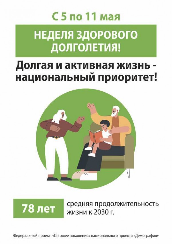 Неделя здорового долголетияС 5 по 11 мая проходит Неделя здорового долголетия — время, когда внимание всей страны направлено на здоровье старшего поколения.